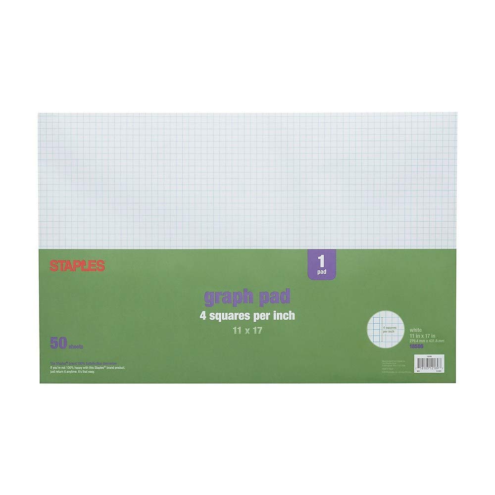 18586 Staples Graph Pad 11 X 17 Graph White 50 Sheets Pad 814566 Paper Products Note Pads