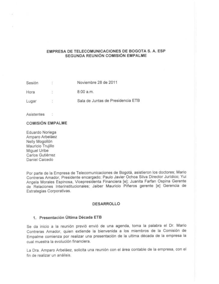 Empresa De Telefonos De Bogota Acta 2da Reunion De Empalme