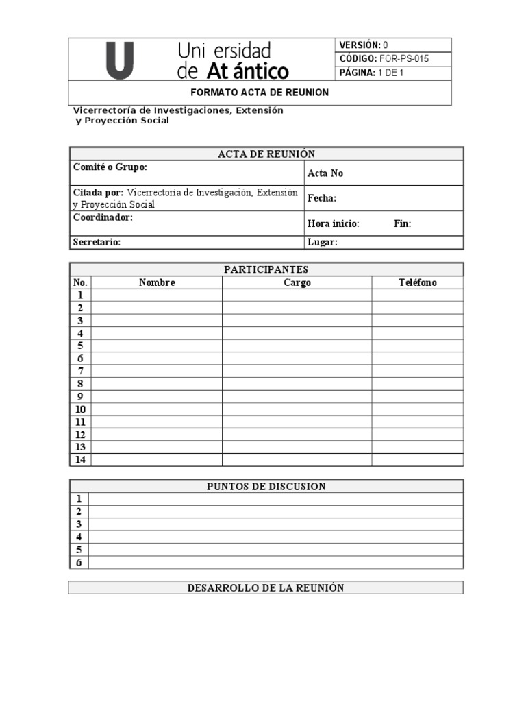 For Ps 015 Formato De Actas De Reunion
