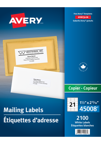 Avery 45008 Address Labels 2 13 16 X 1 1 2 Rectangle White