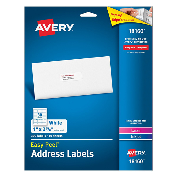 Avery Easy Peel 5160 Address Labels 3000 Count