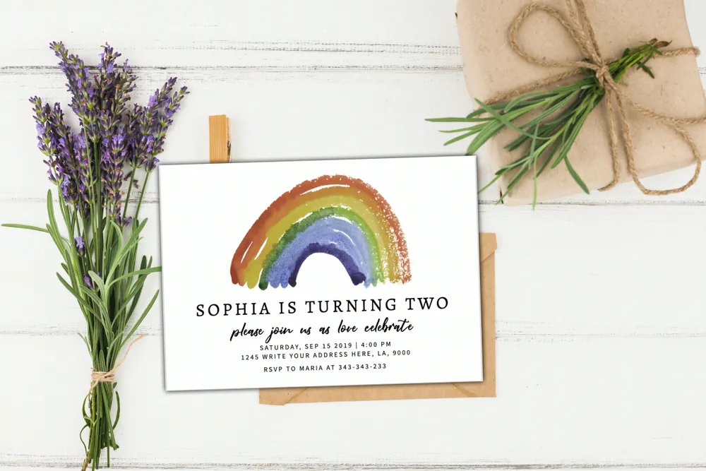 Rainbow Birthday Invitation Kids Birthday Invite Card Bobotemp