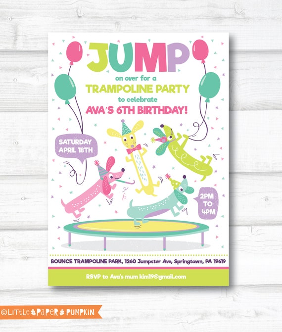 Trampoline Party Invitation Kids Party Invitation Girls Etsy