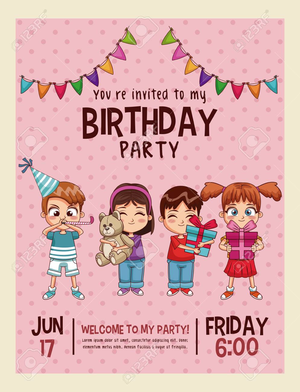 Kids Birthday Party Invitation Card Stock Vector Illustration Of