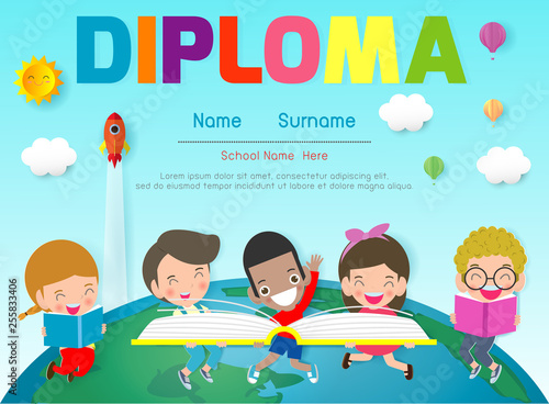 Vector Art Preschool Elementary School Kids Diploma Certificate