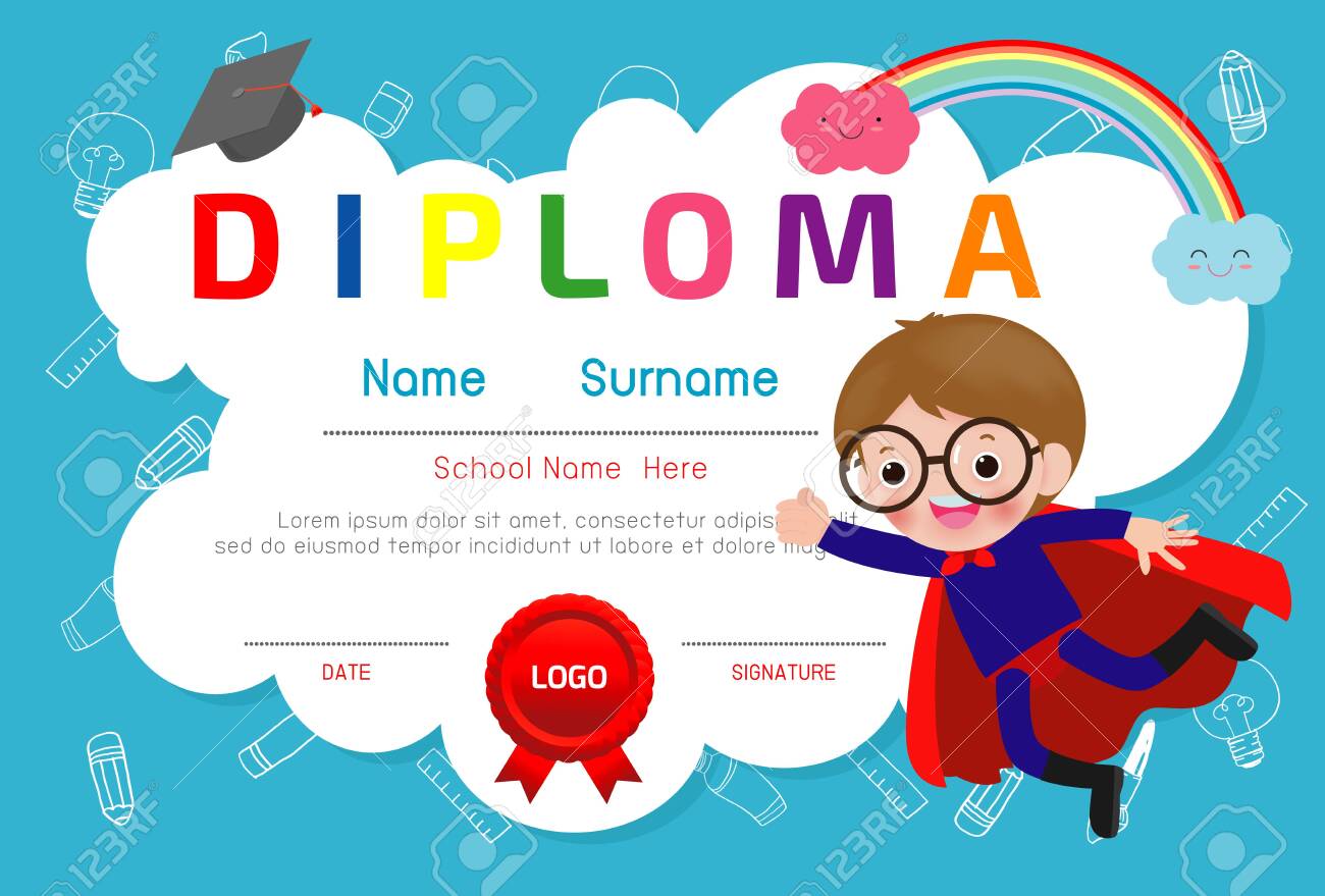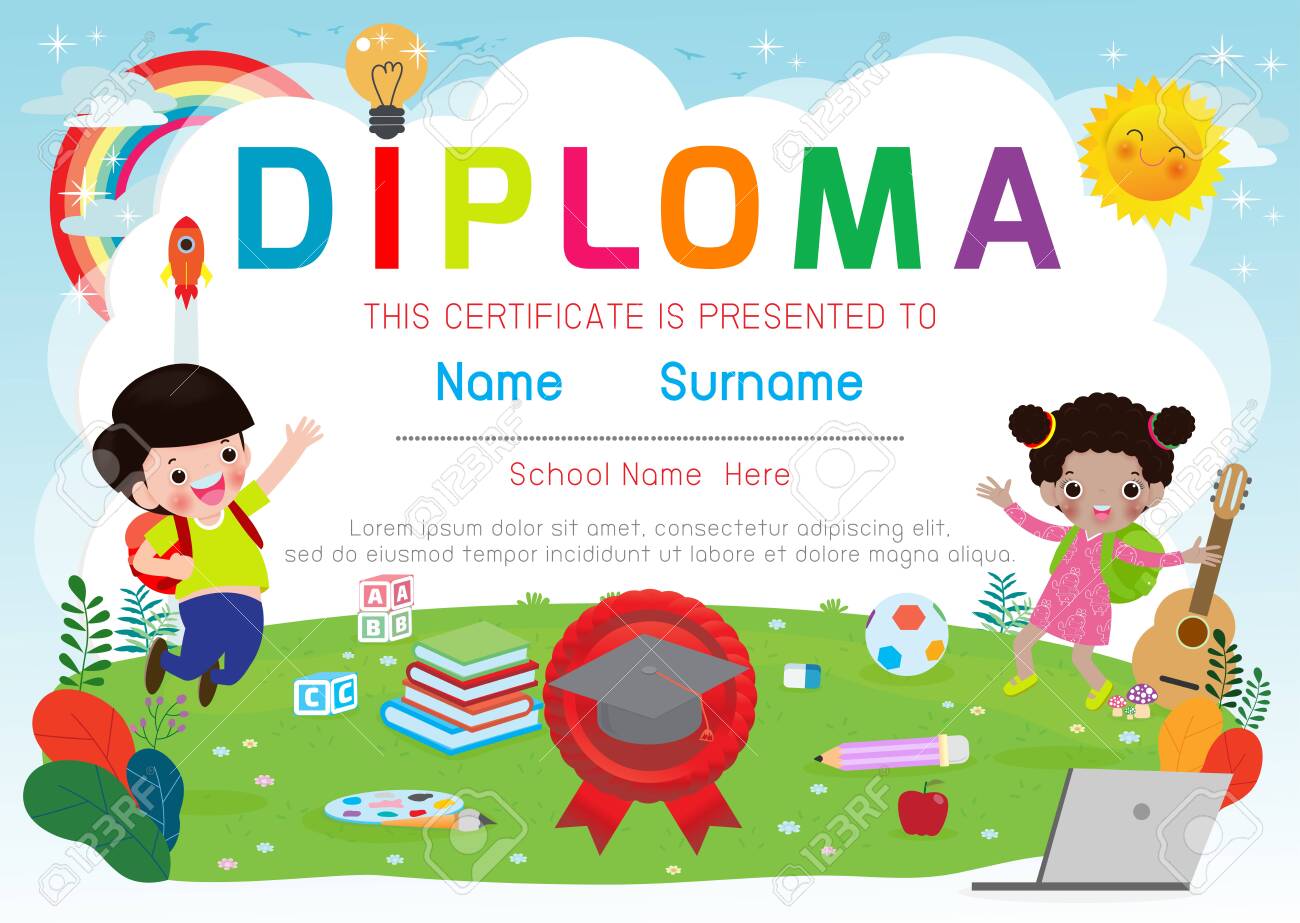 Diploma Template For Kids Certificates Kindergarten And