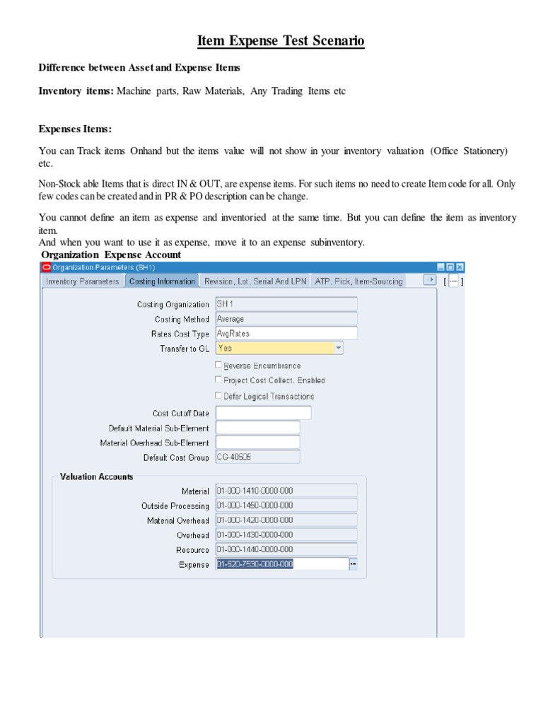 Expense Item Subinv And Asset Item Subinv Pdf Accrual