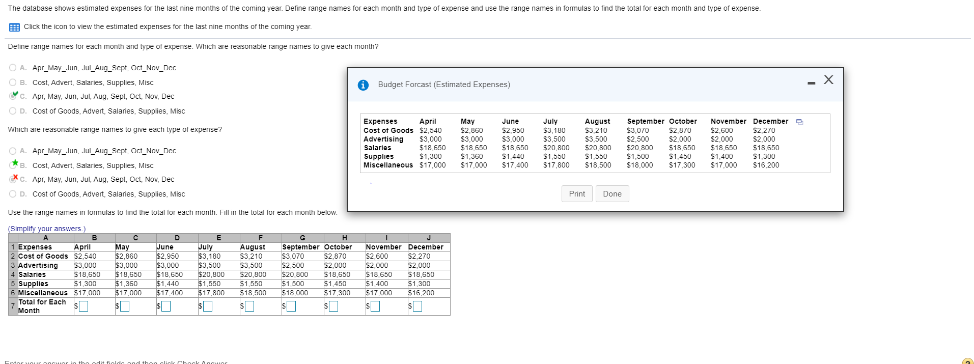 Solved The Database Shows Estimated Expenses For The Last