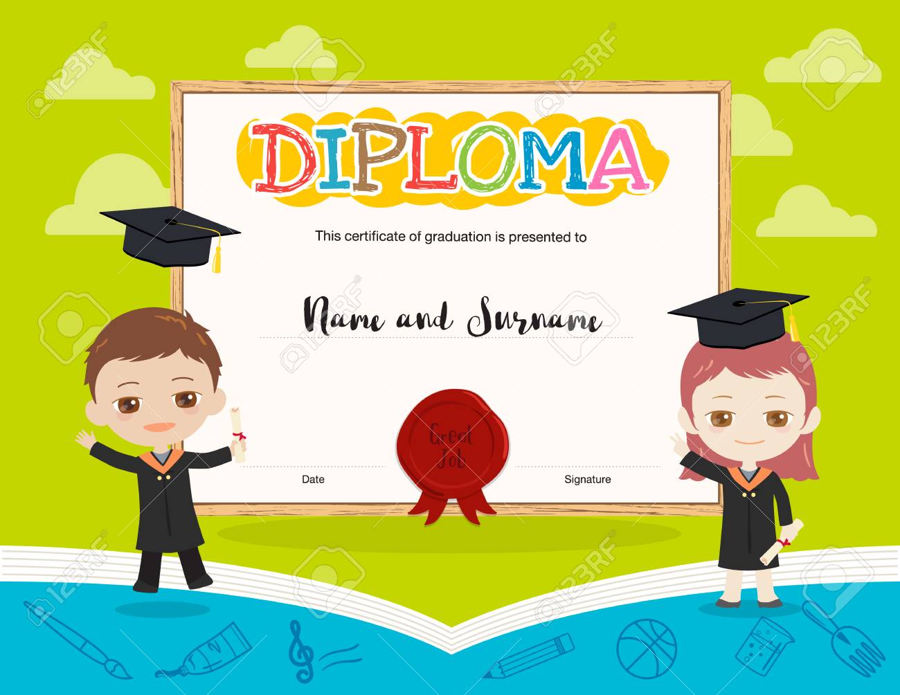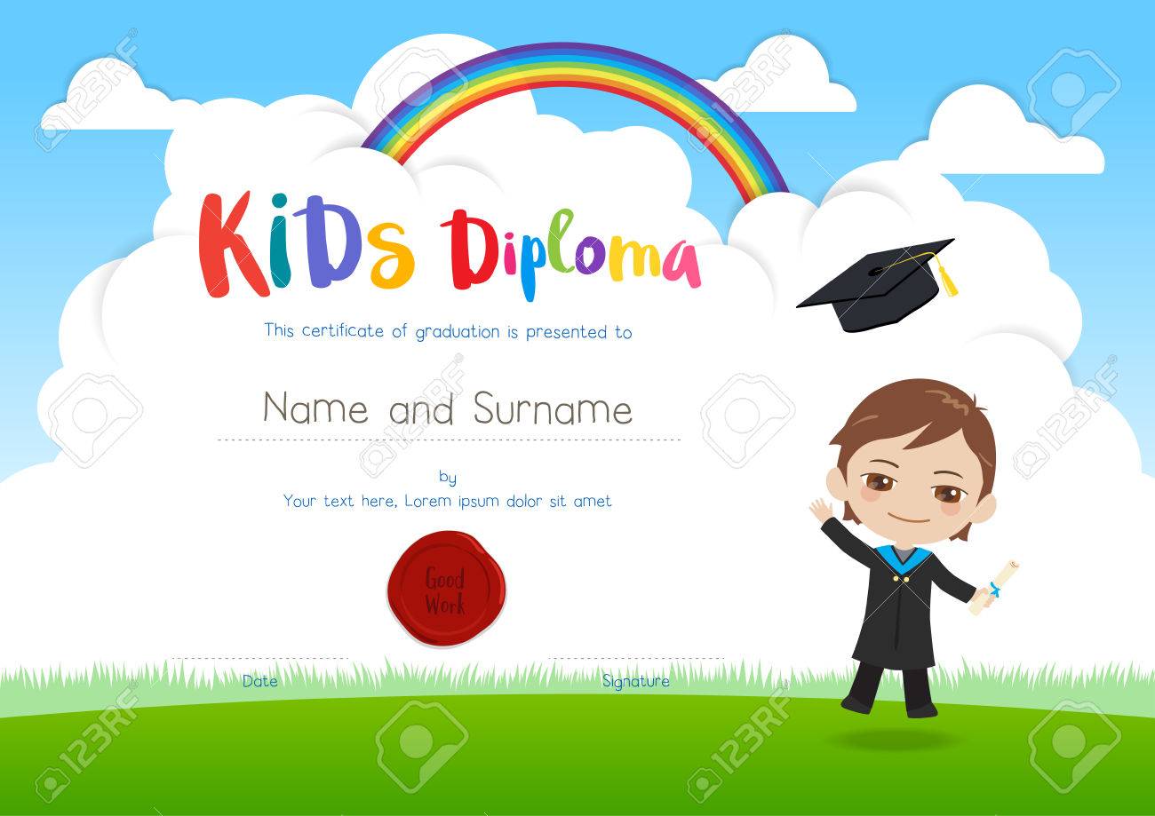 Plantilla De Certificado De Diploma De Ninos Coloridos En Estilo