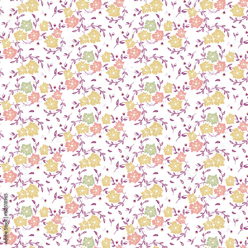 Seamless Flower Pattern With Small Flowers And Leaves Vector