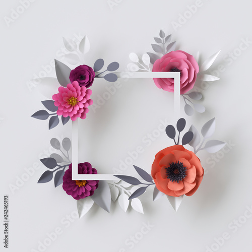 3d Render Abstract Paper Flowers Floral Background Blank Square