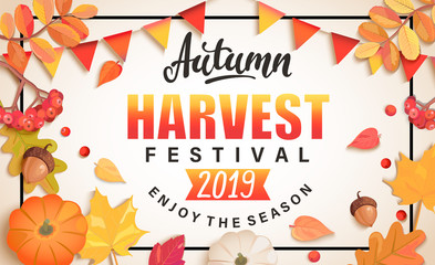 Autumn Festival Of Harvest Poster With Fall Leaves