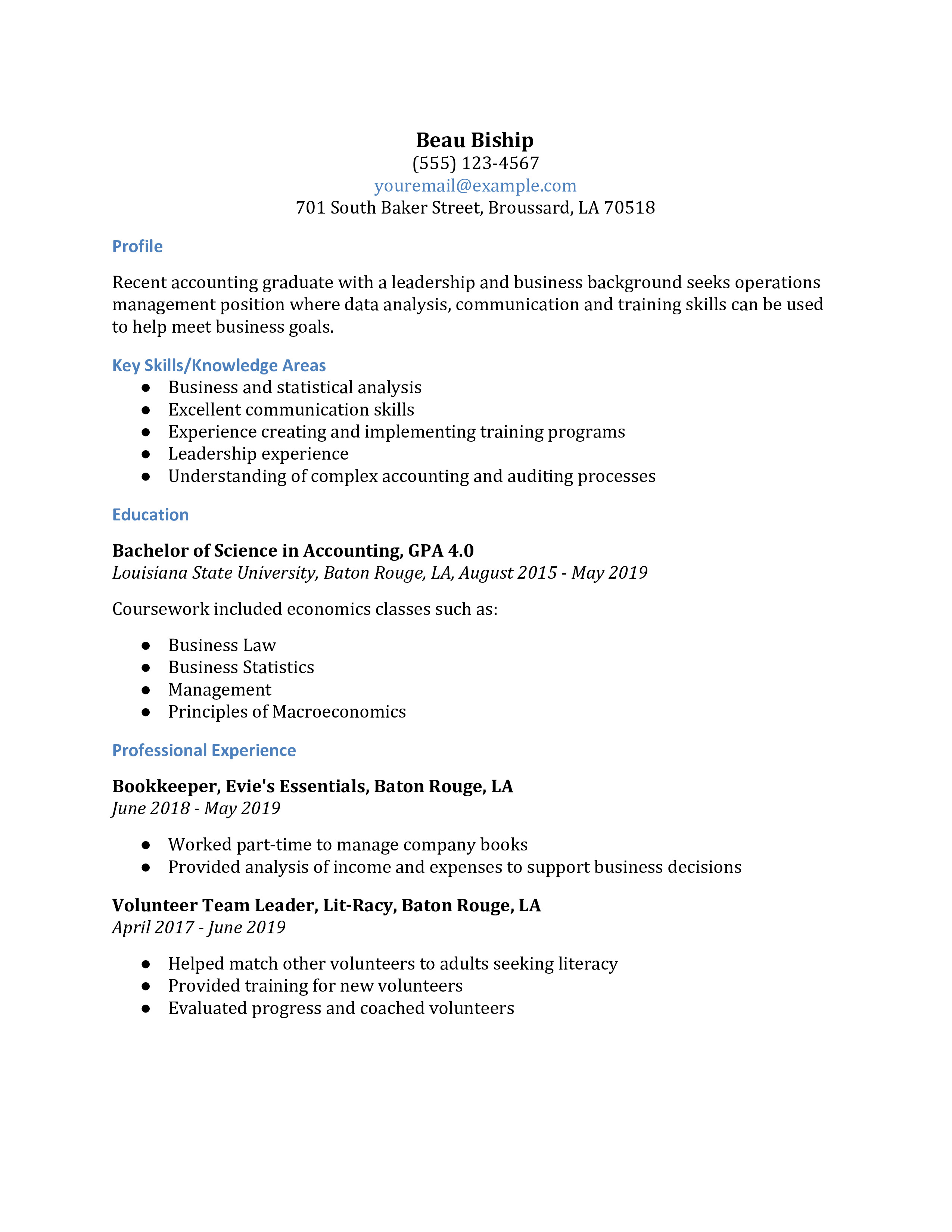 Business Management Graduate Cv Example Kickresume