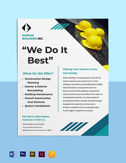 Free Creative Construction Leaflet Psd Ai Id Word Pages