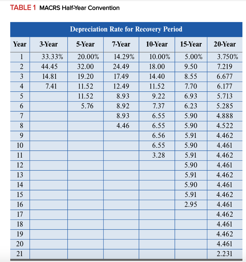 Solved Table 1 Macrs Half Year Convention Depreciation Rate For