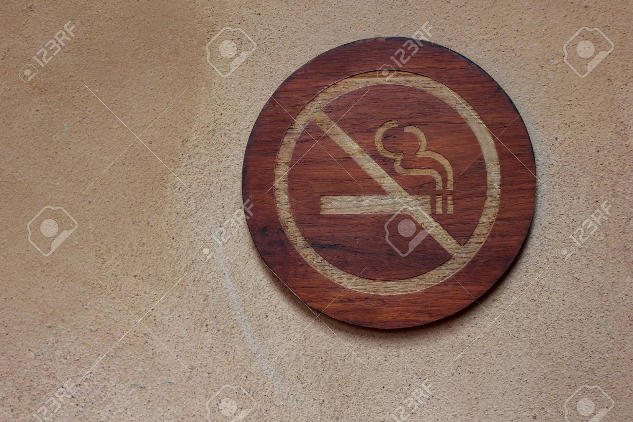 Wooden No Smoking Signage On The Wall Stock Photo Picture And