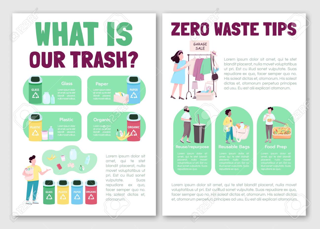 Zero Waste Lifestyle Tips Flat Vector Brochure Template Trash