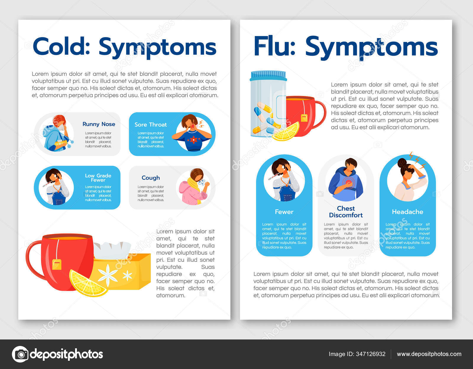 Common Cold And Flu Virus Symptoms Flat Vector Brochure Template