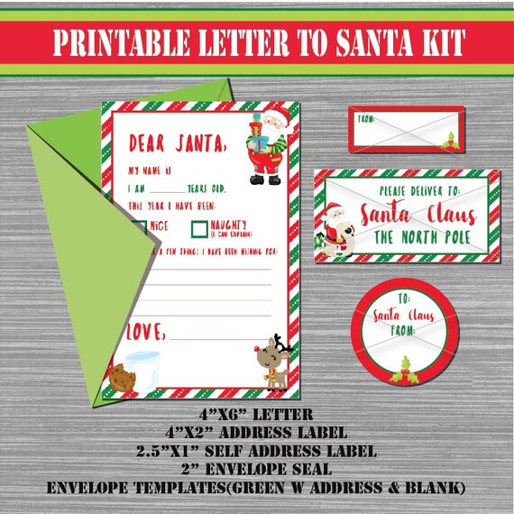 Printable Letter To Santa Kit Letter Address Labels 2 Etsy