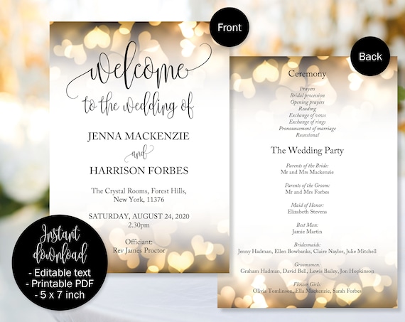Gold Wedding Day Program Template Church Or Civil Service Etsy