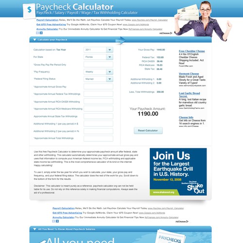 Paycheck Calculator Org Needs A New Website Design Web Page